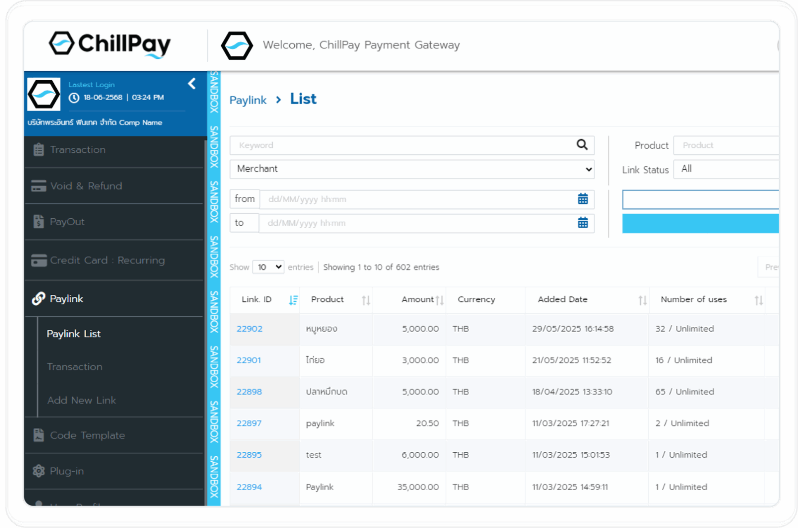 With ChillPayLink, create payment links in just a few simple steps. no website or app required. Share the link via chat, email, or social media, and let customers pay instantly via QR, PromptPay, or credit card. Simple, fast, and perfect for every business.