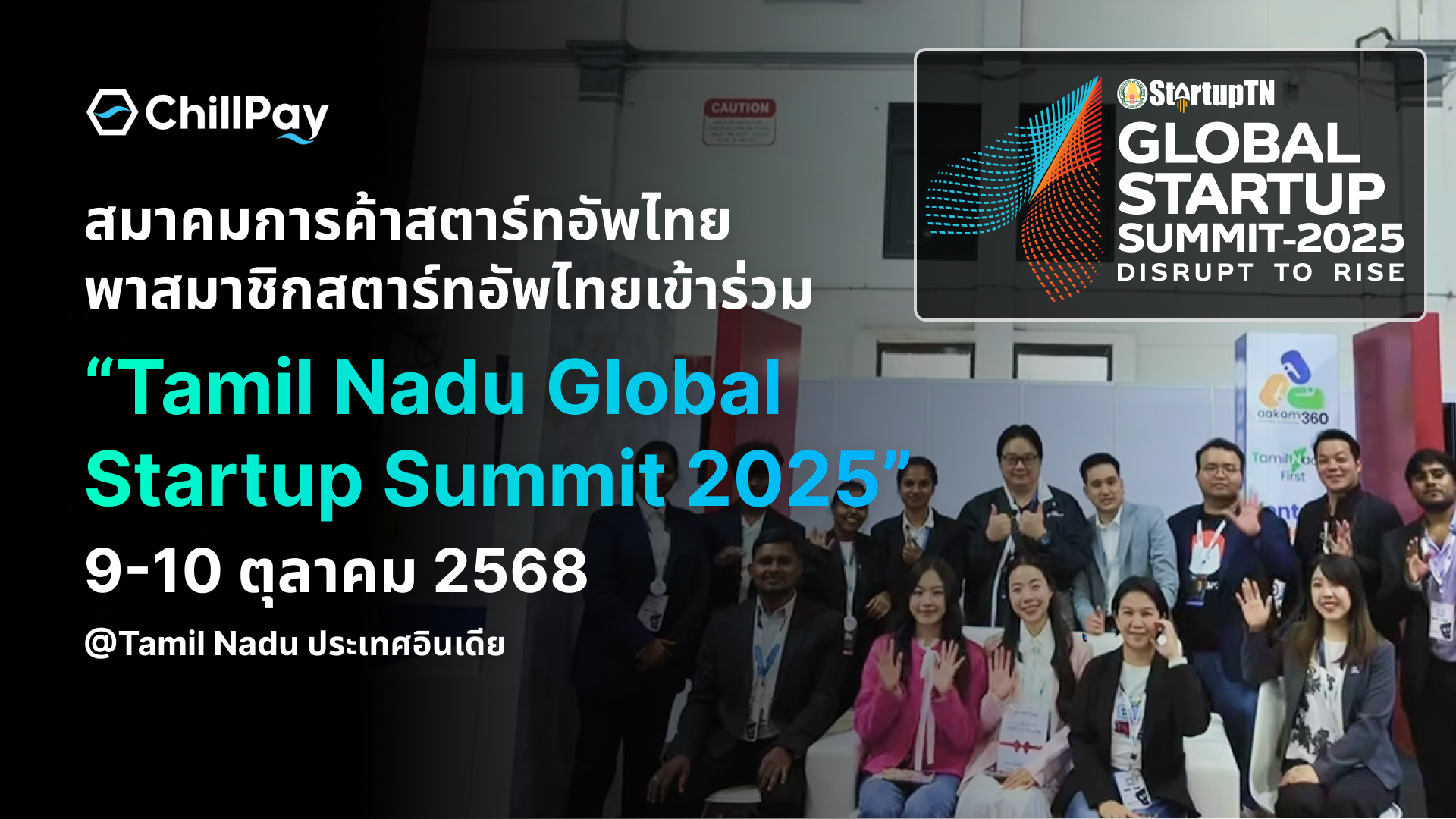 เมื่อวันที่ 9–10 ตุลาคมที่ผ่านมา สมาคมการค้าสตาร์ทอัพไทย (Thai Startup Association) นำสมาชิกสตาร์ทอัพไทย รวมถึง ChillPay (ชิวเพย์) เข้าร่วมงาน Tamil Nadu Global Startup Summit 2025 (TNGSS 2025) ณ เมือง Tamil Nadu ประเทศอินเดีย เพื่อเปิดประตูสู่ตลาดระดับนานาชาติและสร้างพันธมิตรทางธุรกิจใหม่ ๆ